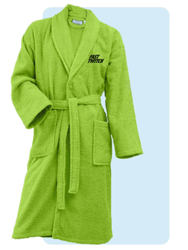 In-house, we embroidered and assembled branded robes, produced vibrant full-color T-shirts, and coordinated with our fabrication partners to create fabric backdrops that reinforced the Fast Twitch visual identity. Our logistics planning ensured every component — from coolers to apparel — arrived in Nashville on time for installation at Vanderbilt University.